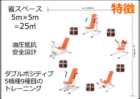 「ラウンドフィットネス🄬」は「どなたでも」「安全に」トレーニングできる機器とステップ運動を組み合わせたサーキットトレーニングであり、シンコースポーツグループが全国でお預かりする運動施設で導入を進めております。